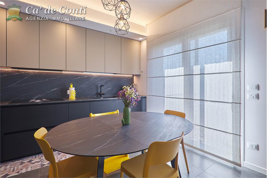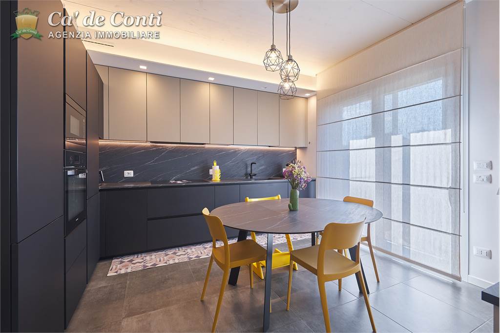 -Arredo su Misura: Cucina completa di eletrodometsici, Soggiorno, Pranzo, Arredo dei due bagni, Armadi a muro, Cabina armadio, Tendaggi.