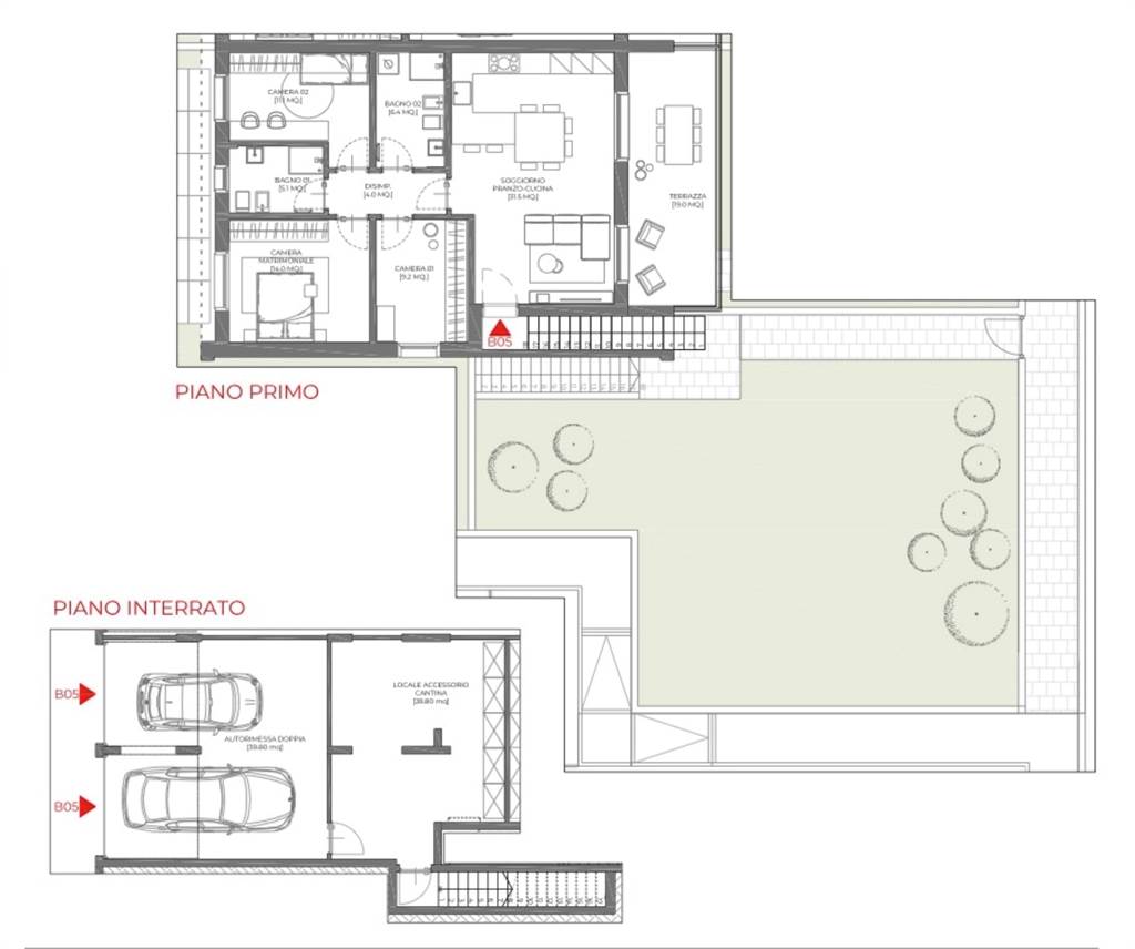 • Interrato di 83 mq direttamente collegato all’abitazione, con cantina e locali accessori