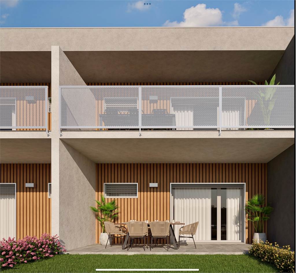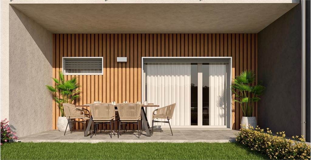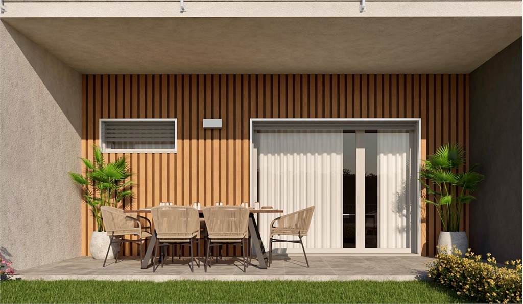 Nuova Residenza in classe energetica A4. Proponiamo soluzione trilocale al piano primo composta da living con cucina aperta e soggiorno, ampio terrazzo vivibile, disimpegno con armadiature a muro, due camere da letto, bagno, angolo lavanderia, interrato ocn box auto di 45 mq.