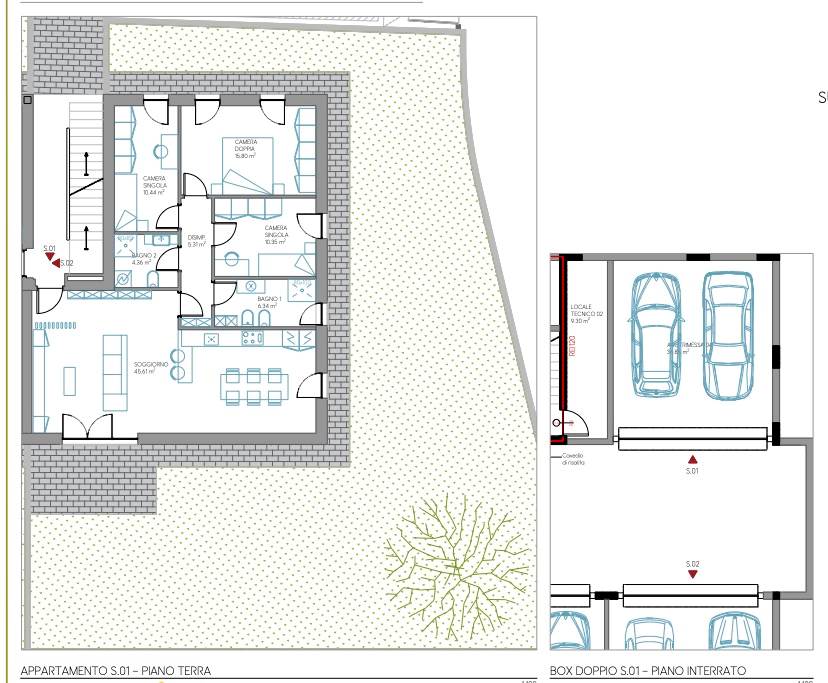 Il complesso è composto da due eleganti ville quadrifamiliari, ben distanziate tra loro e circondate da ampi giardini privati, a garanzia di privacy, sicurezza e comfort abitativo.