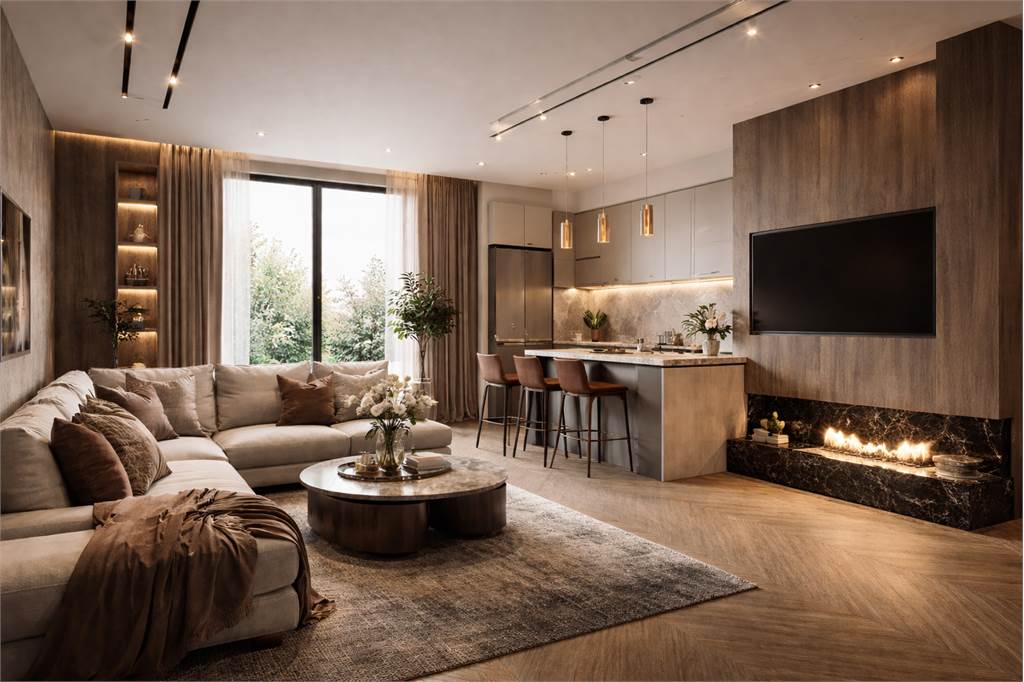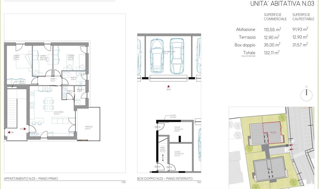 Elegante soluzione 4 locali con ampia zona giorno: open space di 41 mq calpestabili con salone e cucina oltre a ampia terrazza coperta, 3 camere da letto, 2 bagni-lavanderia, box doppio in larghezza al piano interrato.